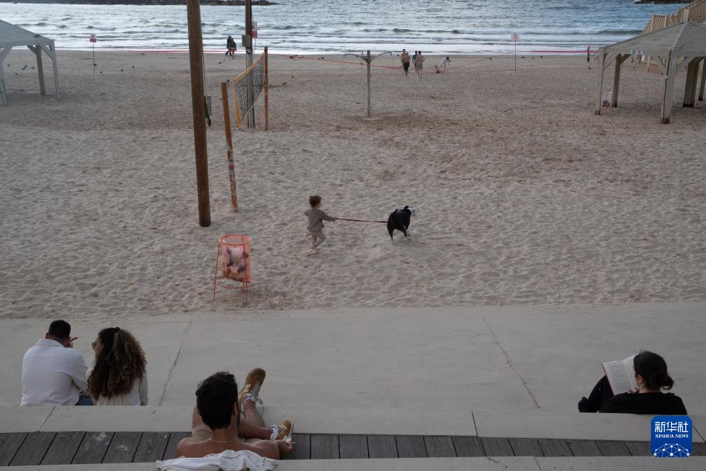 4月8日,人们在以色列特拉维夫海滨休闲。新华社记者 陈君清 摄