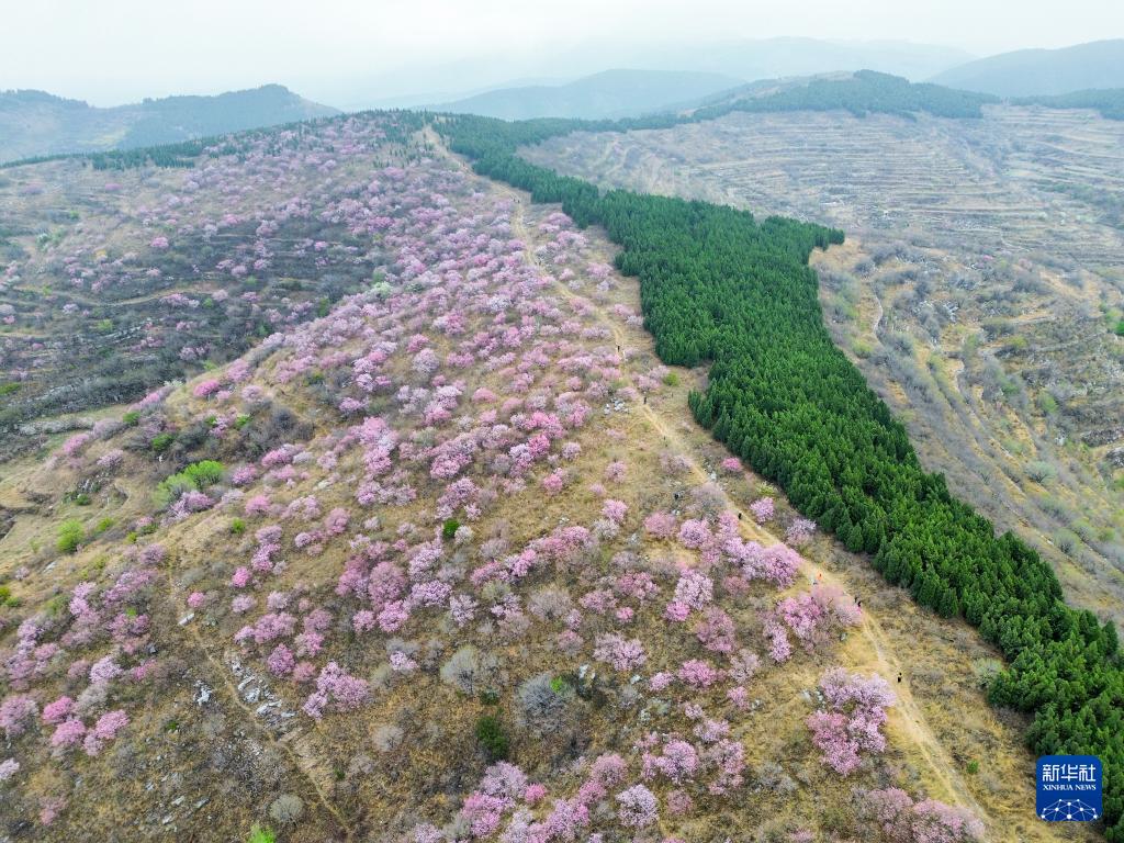 这是4月9日拍摄的山东省淄博市博山区石马镇上焦村桃林(无人机照片)。