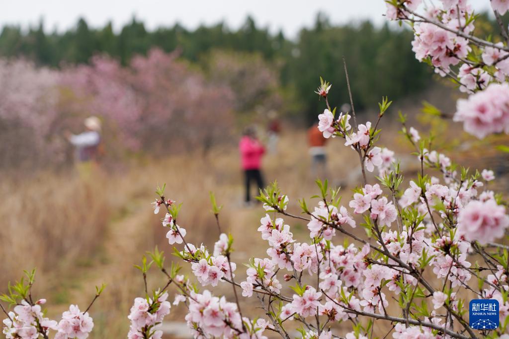 山东淄博:桃红松绿 漫山春光