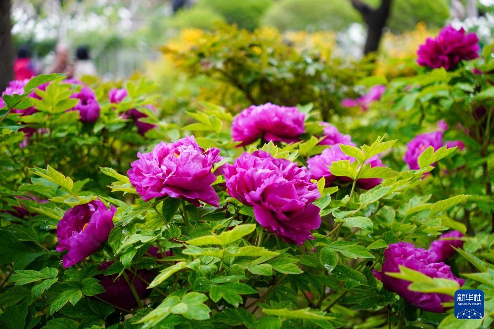 近日,在山东省济南市泉城公园内大面积种植的牡丹花进入盛开期,吸引了众多市民前来观赏。