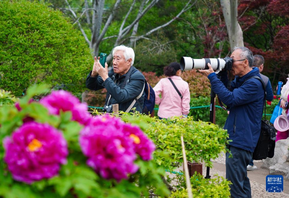 4月9日,摄影爱好者在济南市泉城公园拍摄牡丹花。