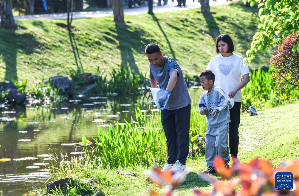 春日,重庆市荣昌区玉带河公园内绿意盎然、碧波相伴,众多市民与游客前来休闲观光,或漫步亲水步道,或驻足赏景拍照,呈现出一派和谐生动的春日景象。