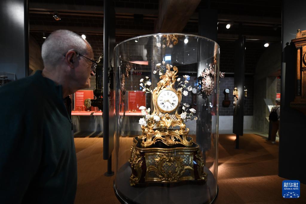4月12日,一名男子在瑞士拉绍德封的国际钟表博物馆内观看展品。
