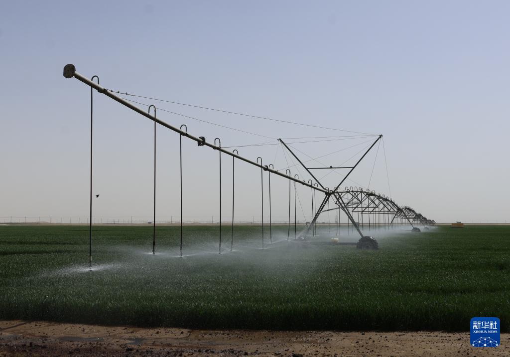 新疆生产建设兵团第十四师昆玉市玉园镇紧邻塔克拉玛干沙漠,目前,该镇的冬小麦正拔节生长。据介绍,玉园镇于2025年引进指针式智能喷灌机,有效提高了节水效率、节约了人工成本。