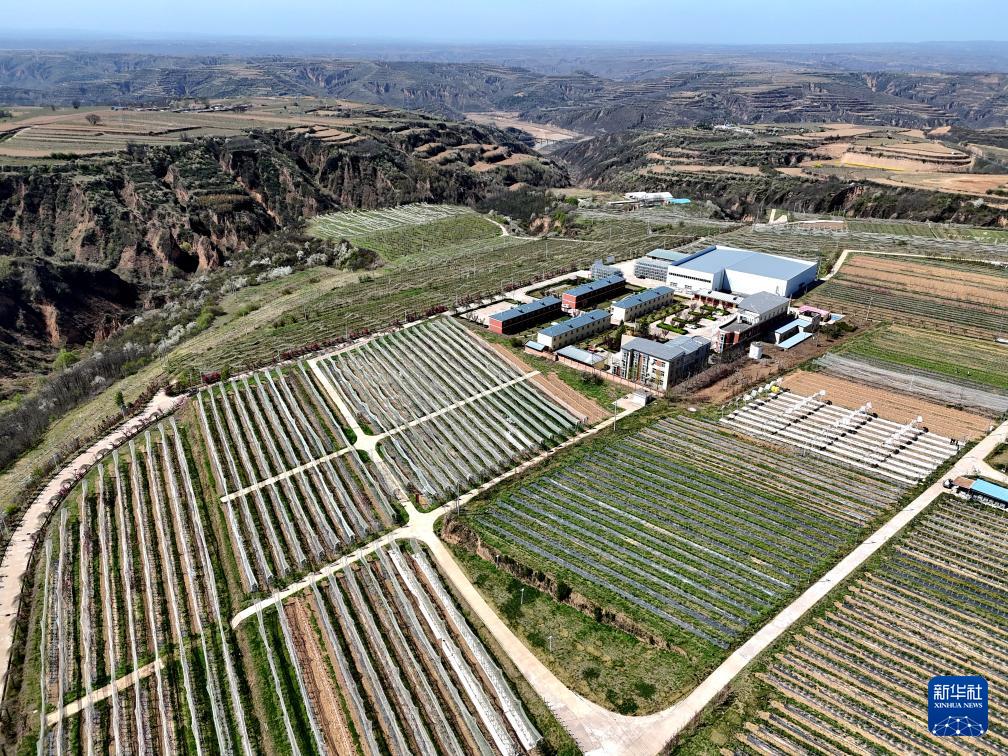 4月10日拍摄的延安洛川苹果试验示范站科技小院(无人机照片)。