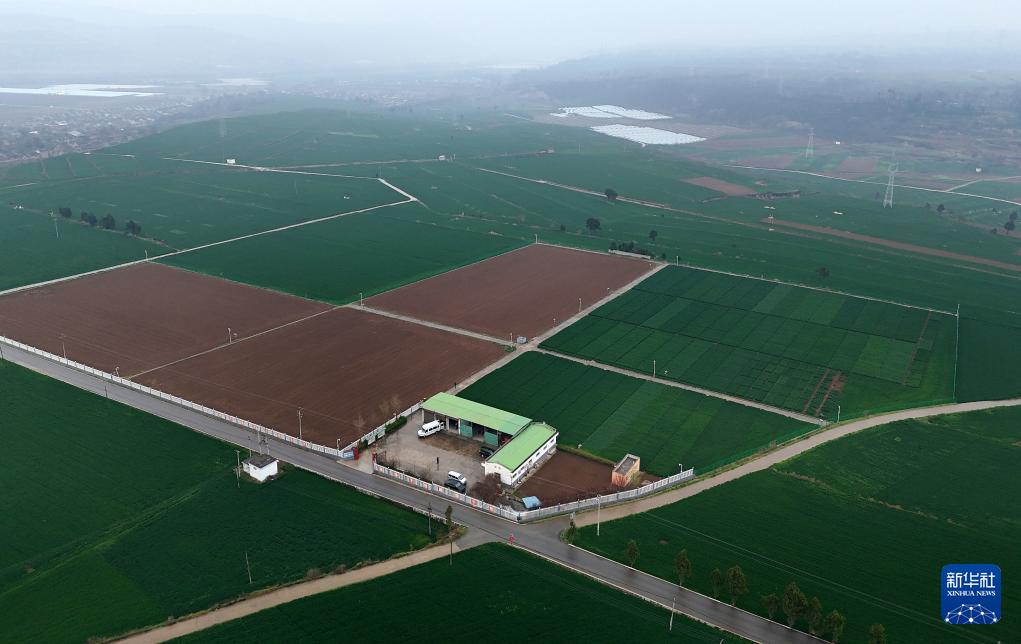 4月8日拍摄的陕西陇县小麦科技小院(无人机照片)。