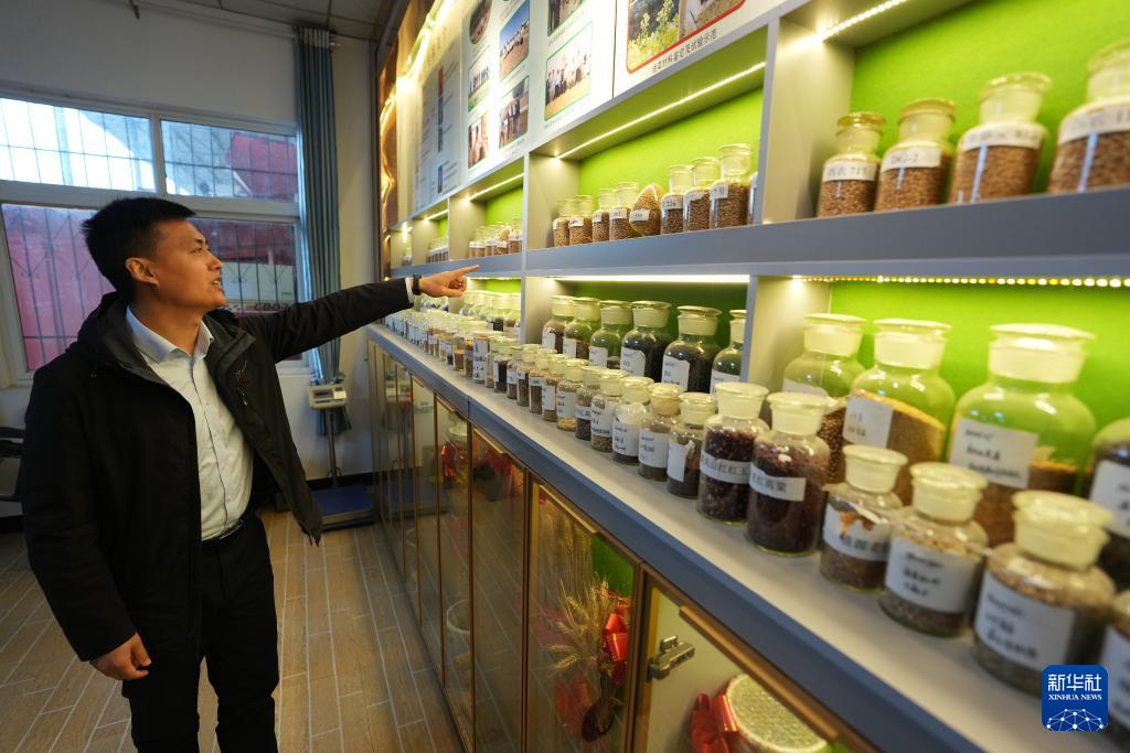 4月8日,陕西陇县小麦科技小院负责人、西北农林科技大学副教授张超介绍小麦品种。
