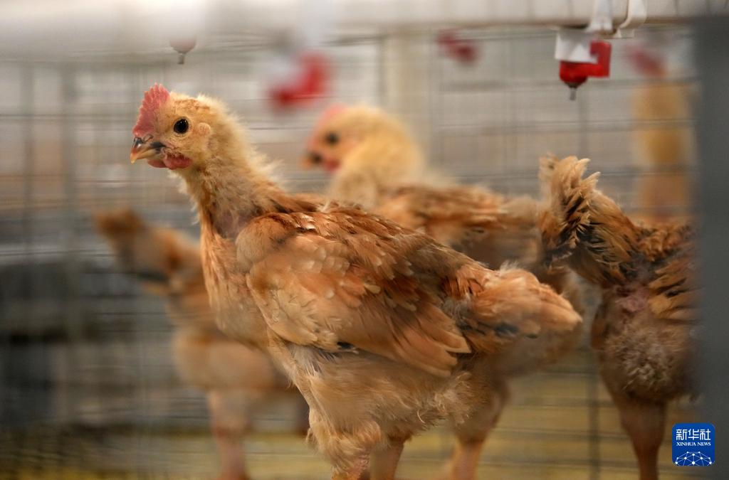 4月9日拍摄的西北农林科技大学陕西武功家禽科技小院标准化育雏舍里用于家禽精准营养评估试验的黄羽雏鸡。
