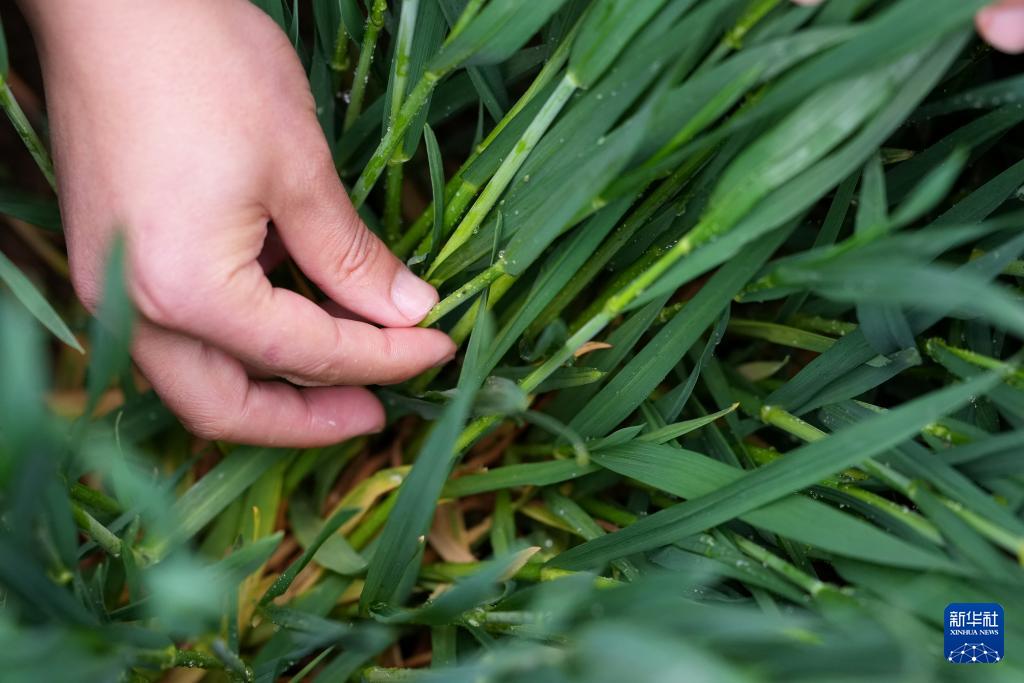 4月8日,陕西陇县小麦科技小院负责人、西北农林科技大学副教授张超在试验田里查看小麦病虫害情况。