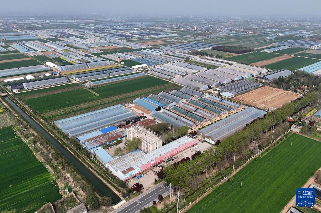 4月9日拍摄的陕西泾阳蔬菜科技小院(无人机照片)。