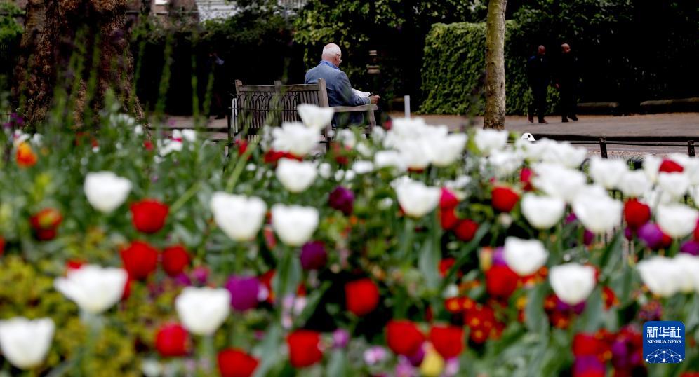 4月14日,人们在英国伦敦圣詹姆斯公园休闲。