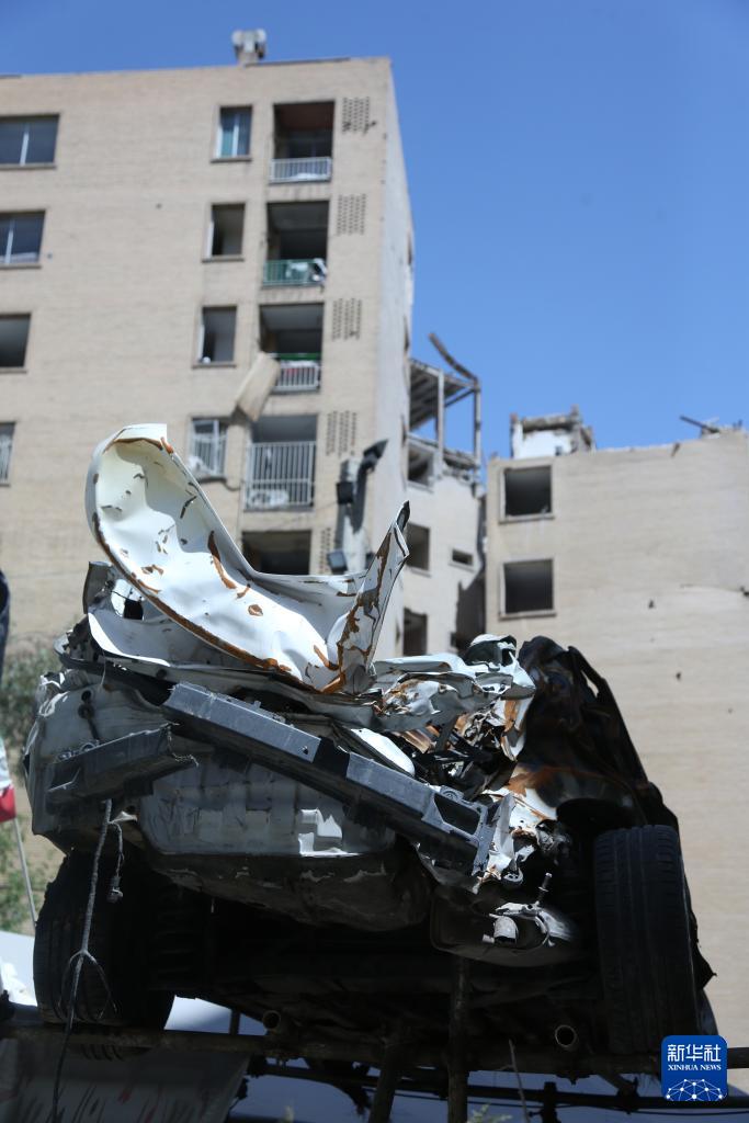 这是4月14日在伊朗首都德黑兰东南部一处居民区拍摄的遭美以袭击严重损毁变形的车辆。美以袭击给居民区造成人员伤亡和严重财产损失,当地居民强烈谴责。