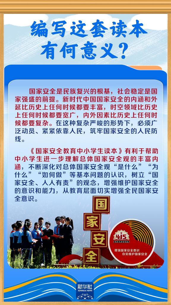 今天是4月15日,第十一个全民国家安全教育日。近日,专为青少年学生编写的《国家安全教育中小学生读本》(以下简称“读本”)由人民出版社与人民教育出版社联合出版发行。这套读本包括哪些主要内容?是如何编写的?提到了哪些国家安全领域?跟随海报,一起了解。