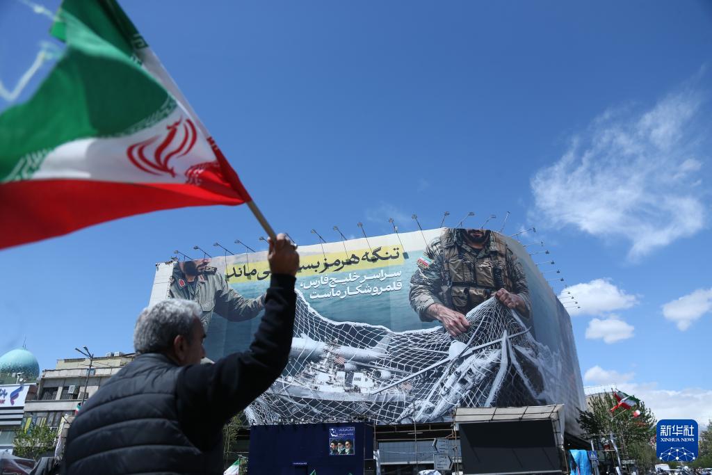 4月8日,一名男子在伊朗首都德黑兰革命广场参加集会。