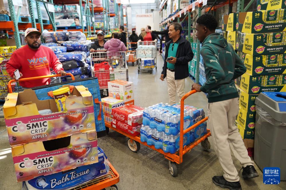 4月10日,人们在美国纽约一家超市购买生活用品。