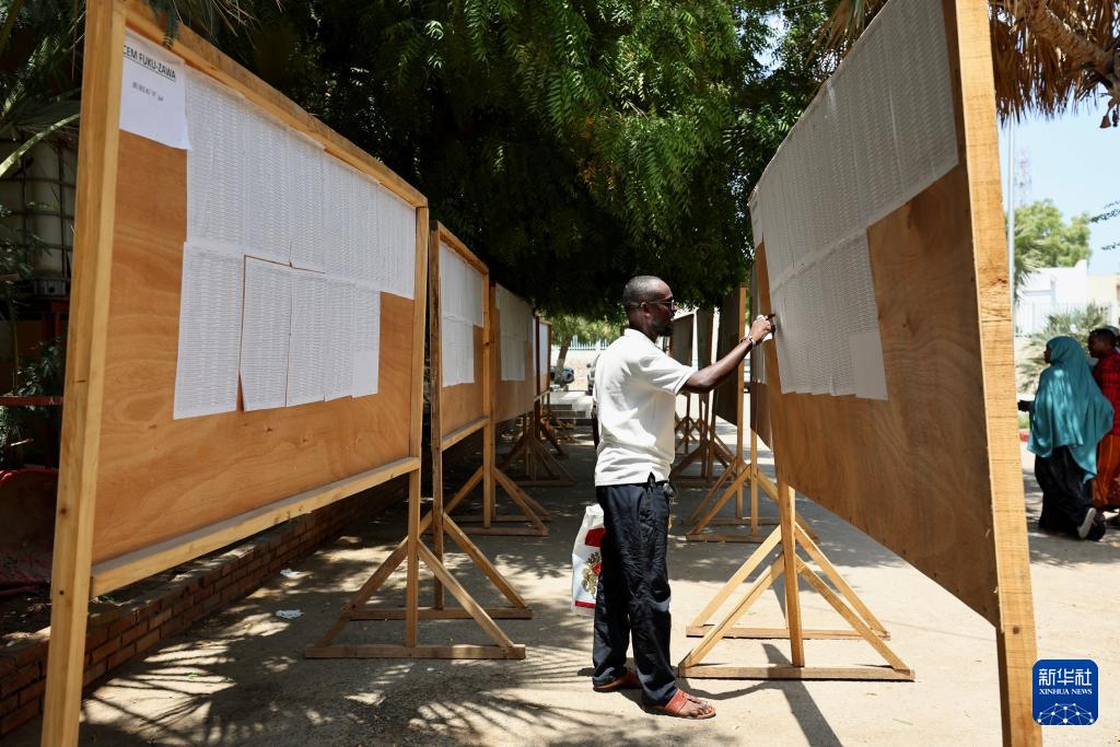 4月10日,在吉布提首都吉布提市一处投票站,选民查看选民登记表。