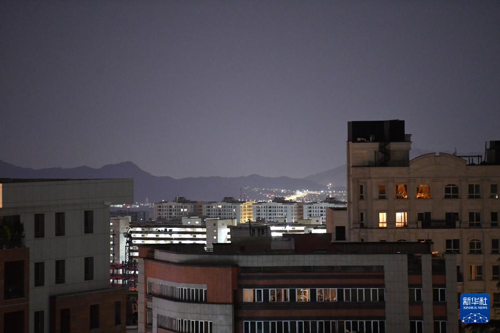 这是4月8日凌晨拍摄的伊朗首都德黑兰城市一景。