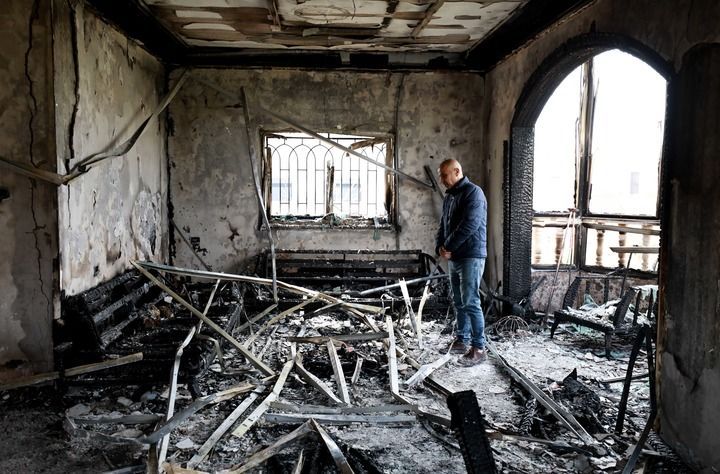户主萨默·奥马尔·海德尔今年50岁,他向记者回忆起前一晚的惊魂遭遇。定居者纵火焚烧了停在院子里的汽车,他们试图撬开大门但没成功,于是砸碎窗户玻璃,隔着防盗栏杆向屋内投掷燃烧物,火势迅速蔓延。为了躲避浓烟和大火,海德尔一家逃到屋顶呼救,眼睁睁看着火焰吞没一切,直到附近村民闻讯赶来。