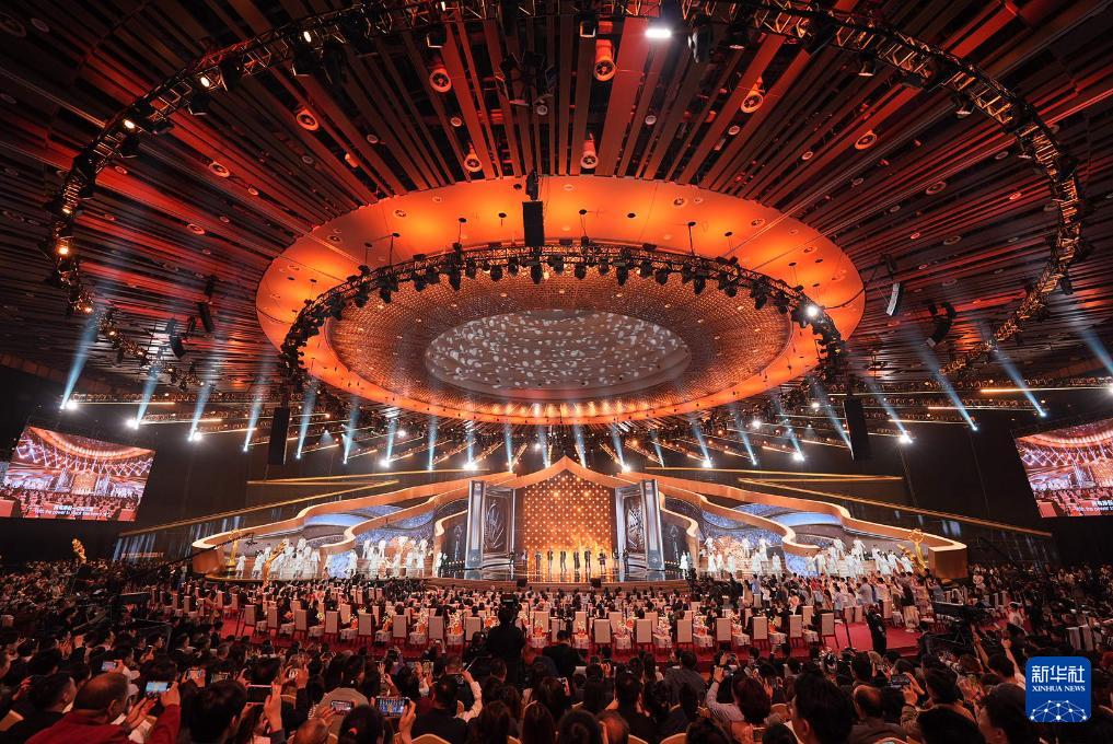 这是4月16日拍摄的第十六届北京国际电影节开幕式现场。 4月16日,第十六届北京国际电影节在北京雁栖湖国际会展中心开幕。 新华社记者 谢晗 摄