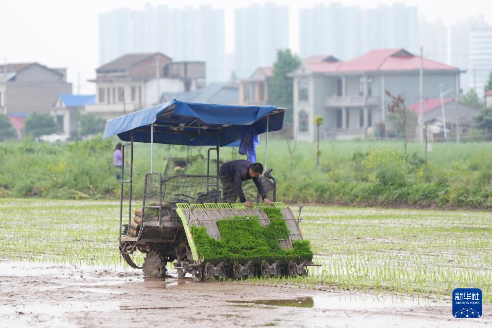 4月16日,在湖南省益阳市南县南洲镇,工人在调整插秧机。 近期,湖南洞庭湖畔多地陆续开启早稻插秧。在益阳市南县南洲镇,多台无人驾驶插秧机在田间穿梭作业。这些无人驾驶插秧机具备实时定位与路径规划能力,能够节省人工劳力,使插秧作业更加规范、高效,便于田间管护。 新华社记者 陈振海 摄