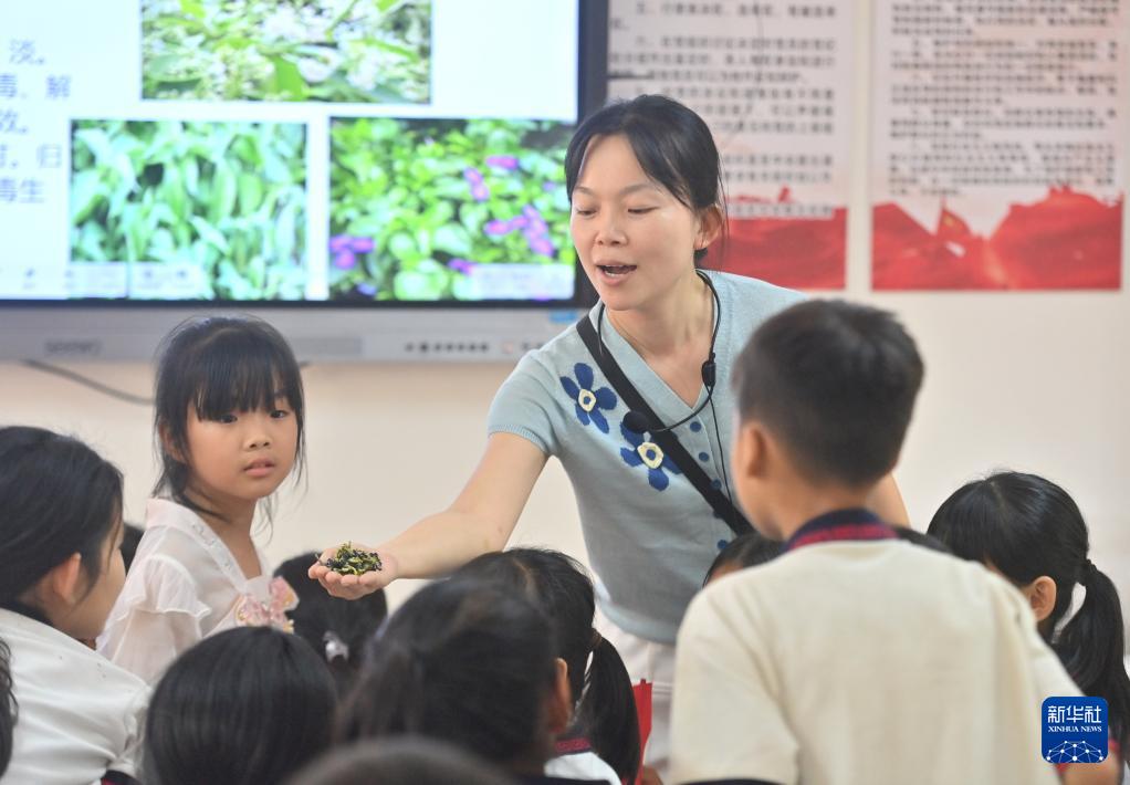 4月16日,广西梧州市长洲区组织一批老师来到倒水镇大桥小学,开展送教下乡活动,帮助乡村小学学生了解非遗和科技知识。