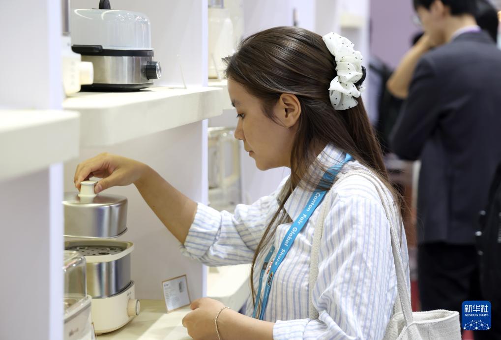 4月19日,采购商在广交会上参观选购小熊电器小家电。新华社记者 卢汉欣 摄
