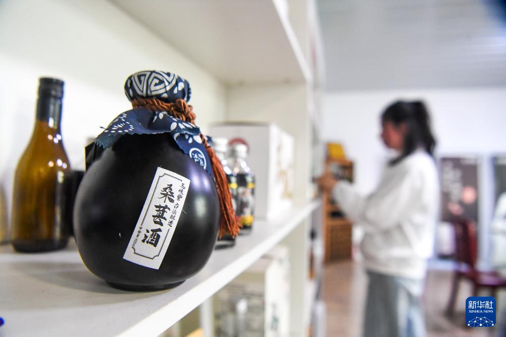 这是三峡紫果桑采摘园延伸开发出的桑葚酒、桑葚果干等系列产品(4月19日摄)。 新华社记者 唐奕 摄 |