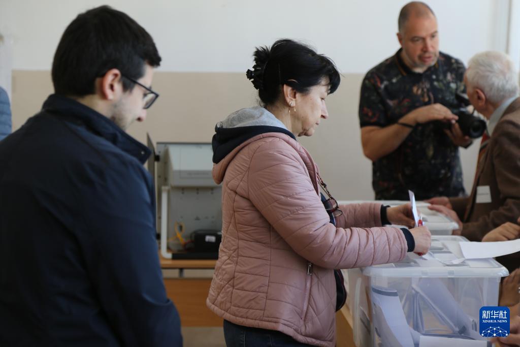 4月19日,在保加利亚索非亚,选民在一处投票站参加投票。