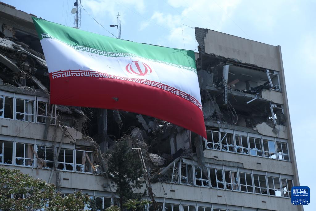 4月20日,在伊朗首都德黑兰,伊朗国旗悬挂在遭美以袭击被严重损毁的建筑上。
