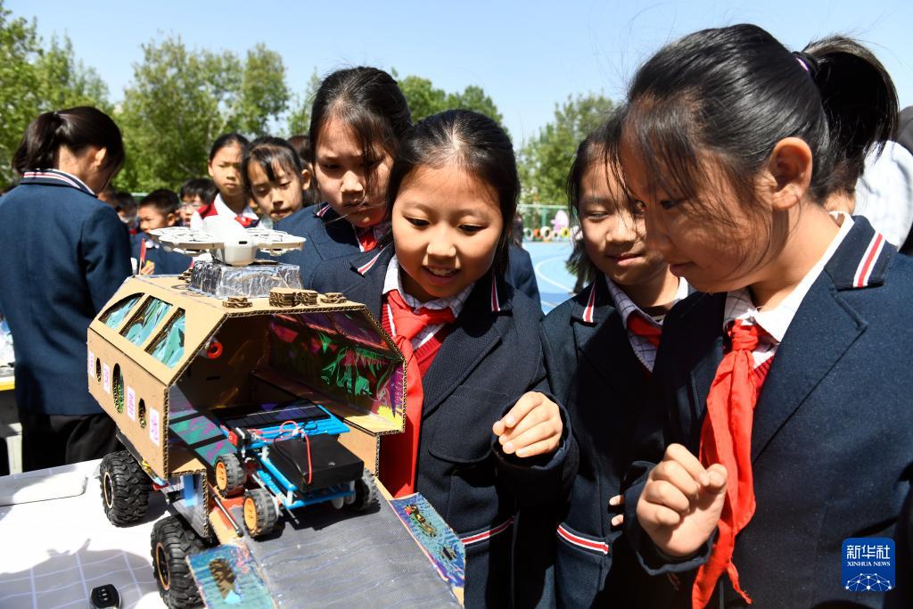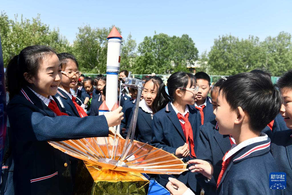 4月20日,在济南市历下区燕山小学,同学们在参观“雏燕启航 筑梦星河”主题美育成果展。 4月20日,在第十一个中国航天日即将到来之际,山东省济南市历下区燕山小学举行“雏燕启航 筑梦星河”主题美育成果展示活动。该校艺术社团以航天为主题,集中呈现了美育与航天教育融合育人的成果。 新华社记者 郭绪雷 摄