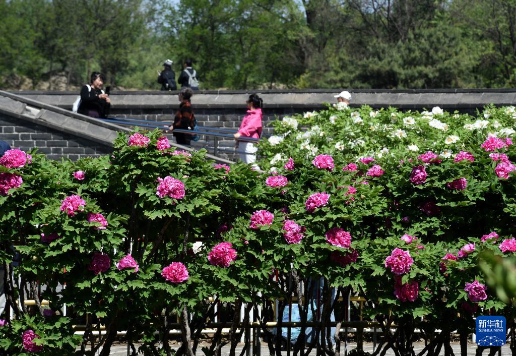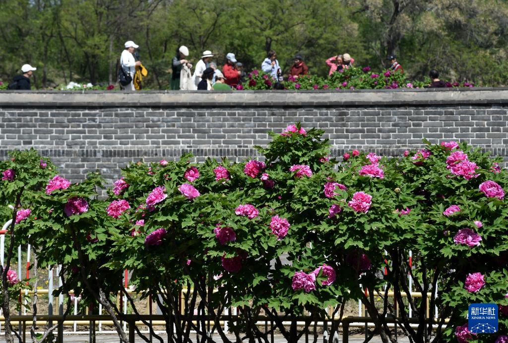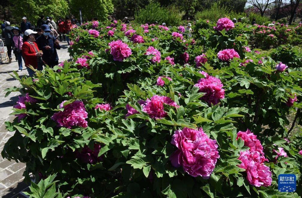 4月20日,游客在圆明园踏青赏花。 谷雨时节,北京圆明园三万平方米的上百种牡丹迎来最佳观赏期,含经堂、藻园、镂月开云、鸿慈永祜等主要牡丹种植区域内,花王、姚黄、皇冠等珍贵品种次第盛开,为这座园林增添了浓郁的春日盛景。 新华社记者 罗晓光 摄