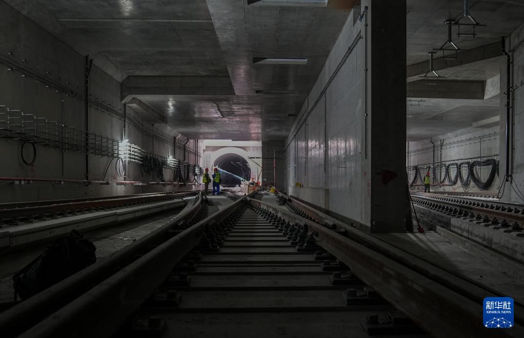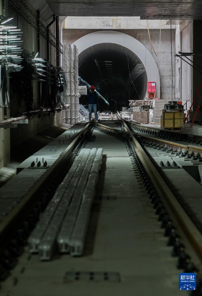 4月21日拍摄的上海市崇明区陈家镇站内部。 4月21日上午,随着中铁五局作业人员在崇明岛陈家镇车站内完成最后一对钢轨接头焊接,上海首条穿越长江的轨道交通工程——上海轨道交通22号线(崇明线)正式实现全线轨道贯通,为后续机电设备安装、系统联调联试及电客车上线调试奠定了基础。 作为连接上海市崇明区与上海中心城区的轨道交通线路,上海轨道交通22号线全长超42公里,全线共设8座车站。未来建成后,22号线将与上海地铁网络实现无缝衔接,拉近崇明区与上海市区的时空距离,进一步提升区域交通便利性,同时为长三角一体化发展注入新动力。 新华社记者 丁汀 摄