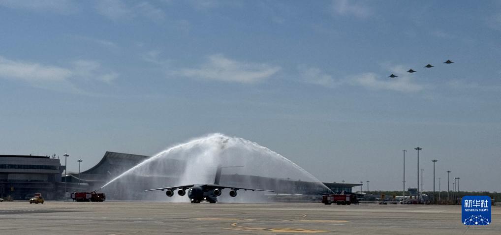 4月22日,第十三批在韩中国人民志愿军烈士遗骸回国。这是接迎第十三批在韩中国人民志愿军烈士遗骸回国的空军运-20B降落在沈阳桃仙国际机场。新华社记者李钢 摄 新华社沈阳4月22日电(记者刘艺、丁非白)第十三批在韩中国人民志愿军烈士遗骸22日上午由中国空军运-20B从韩国接回辽宁沈阳。12位志愿军烈士英灵及146件遗物回到祖国怀抱。 22日上午,中韩双方在韩国仁川国际机场举行志愿军烈士遗骸交接仪式。9时50分许,呼号为“荣归50”的运-20B起飞。进入中国领空后,呼号为“红鹰”的4架歼-20迎接护航,“双20”列阵长空致以崇高敬意。11时25分,运-20B平稳降落在辽宁沈阳桃仙国际机场,机场以“过水门”最高礼遇为英灵洗尘。 11时53分,第十三批在韩中国人民志愿军烈士遗骸迎回仪式开始。解放军官兵军容严整、持枪伫立,礼兵双手捧起覆盖着五星红旗的志愿军烈士遗骸棺椁,缓步走下专机,整齐安放于指定位置。现场全体人员向烈士遗骸棺椁三鞠躬。 共有1800余人参加了仪式。其中,有抗美援朝老战士、烈士家属代表、抗美援朝英雄连队官兵代表,有神舟二十号航天员乘组、奥运健儿、港澳台师生、青少年学生代表。 迎回仪式结束后,志愿军烈士遗骸棺椁被护送前往沈阳抗美援朝烈士陵园。春意盎然的沈阳街头,各界群众沿长街等候,向志愿军英灵致敬。第十三批在韩中国人民志愿军烈士遗骸安葬仪式将于23日举行。 自2014年以来,中韩双方遵循国际法和人道主义原则,已连续成功交接13批共1023位在韩中国人民志愿军烈士遗骸。