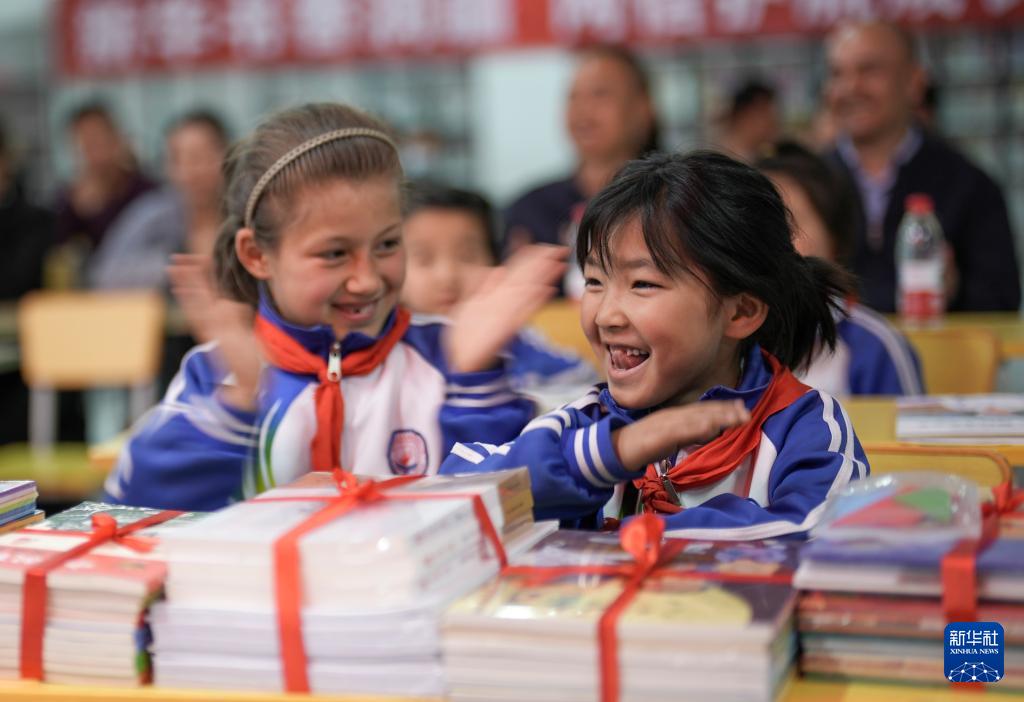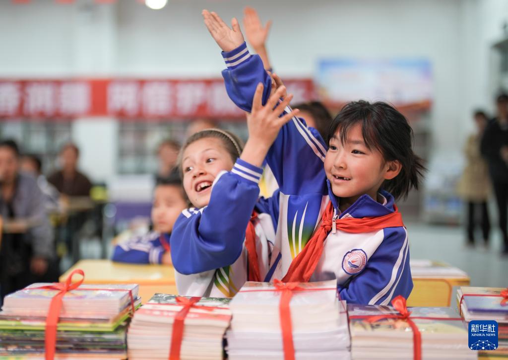 4月21日,在新疆新和县依其艾日克镇依其艾日克村,小朋友高兴地领取到赠送的书籍。 4月23日世界读书日来临之际,新疆新和县开展丰富多彩的经典诵读、好书分享、全民阅读等系列主题活动。以书香浸润心田、以阅读凝聚民心,弘扬中华优秀传统文化,铸牢中华民族共同体意识,持续营造爱读书、读好书、善读书的浓厚社会氛围。 新华社记者 王菲 摄