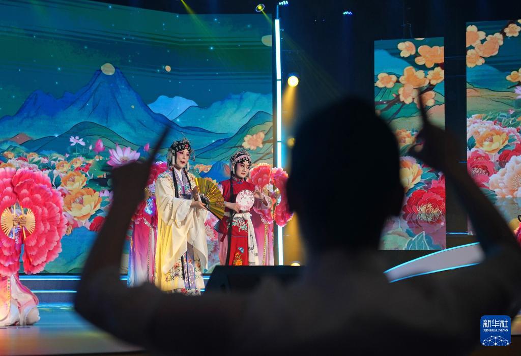 4月22日,在启动仪式现场,听障演员在老师的指挥下表演戏曲《牡丹亭·游园》。