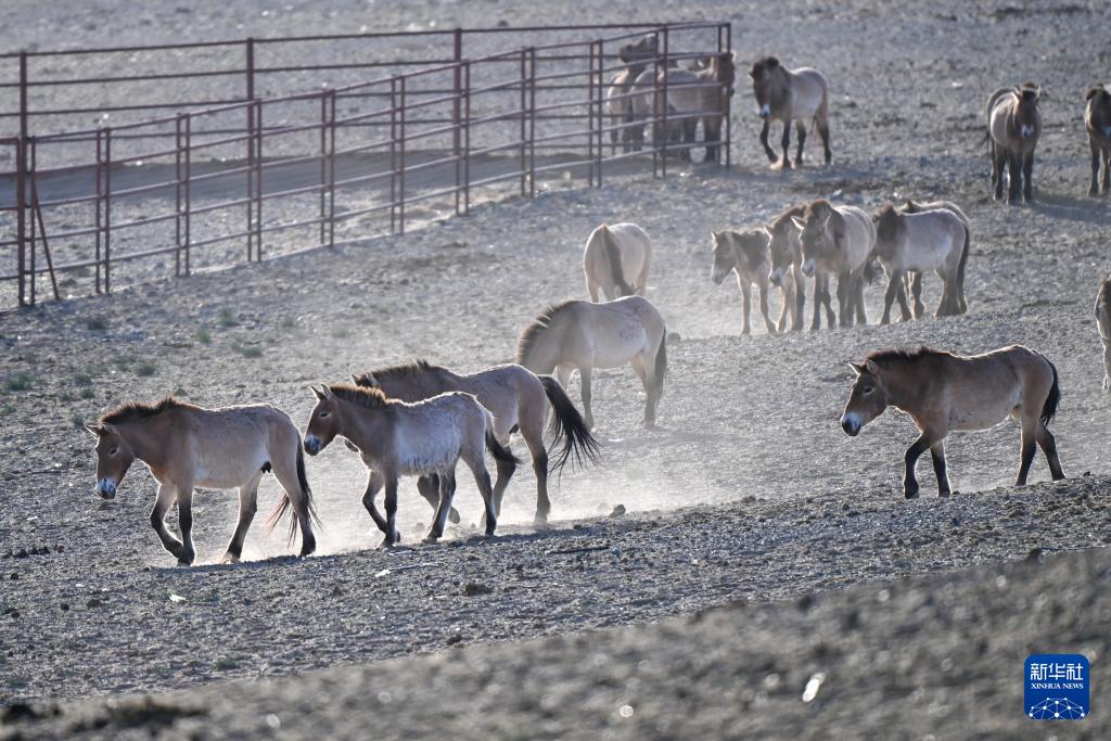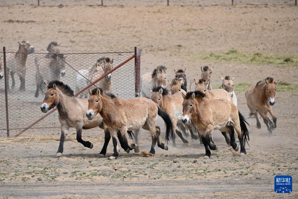 在新疆卡拉麦里山有蹄类野生动物自然保护区,野放的普氏野马冲出围栏(4月22日摄)。 4月22日,新疆卡拉麦里山有蹄类野生动物自然保护区迎来新成员——30匹普氏野马完成野化训练,成功放归野外。 据介绍,2025年10月下旬,30匹普氏野马分三批次从180公里外的野马繁育研究所运抵监测站,它们在围栏区内与冬季返回补饲的百余匹普氏野马自然融合,经过一个冬季的适应,以及种群内的自由竞争,逐渐形成新的稳定群体。 普氏野马是地球上唯一存活的野生马种,曾一度濒临野外灭绝。1985年,我国启动了“野马返乡”计划,从国外引回普氏野马并在新疆建立亚洲最大的普氏野马繁殖基地。 历经多年保护繁育、野化放归工作,我国普氏野马人工繁育与野外种群规模持续扩大,生态适应性不断提升。自2001年首次放归27匹普氏野马至今,新疆放归普氏野马总数达到176匹,野外种群数量稳定增长,已经达到392匹。 新华社记者 丁磊 摄