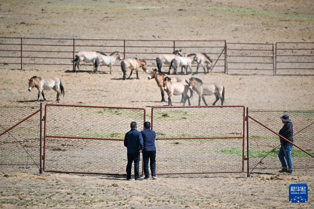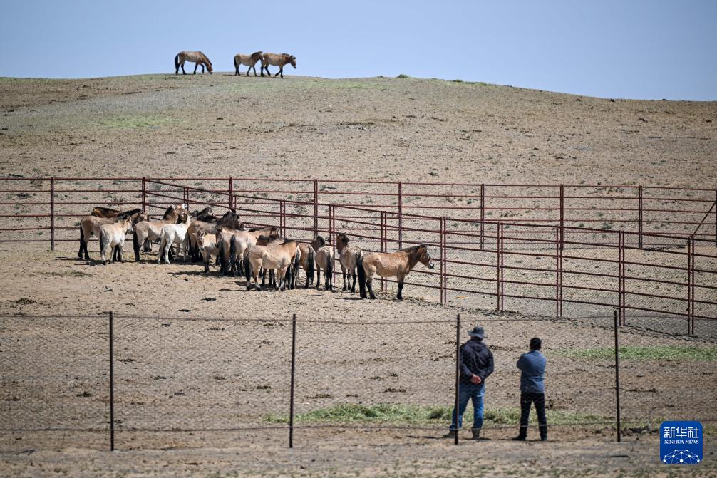 在新疆卡拉麦里山有蹄类野生动物自然保护区,工作人员在观察即将野放的普氏野马状态(4月22日摄)。 4月22日,新疆卡拉麦里山有蹄类野生动物自然保护区迎来新成员——30匹普氏野马完成野化训练,成功放归野外。 据介绍,2025年10月下旬,30匹普氏野马分三批次从180公里外的野马繁育研究所运抵监测站,它们在围栏区内与冬季返回补饲的百余匹普氏野马自然融合,经过一个冬季的适应,以及种群内的自由竞争,逐渐形成新的稳定群体。 普氏野马是地球上唯一存活的野生马种,曾一度濒临野外灭绝。1985年,我国启动了“野马返乡”计划,从国外引回普氏野马并在新疆建立亚洲最大的普氏野马繁殖基地。 历经多年保护繁育、野化放归工作,我国普氏野马人工繁育与野外种群规模持续扩大,生态适应性不断提升。自2001年首次放归27匹普氏野马至今,新疆放归普氏野马总数达到176匹,野外种群数量稳定增长,已经达到392匹。 新华社记者 丁磊 摄