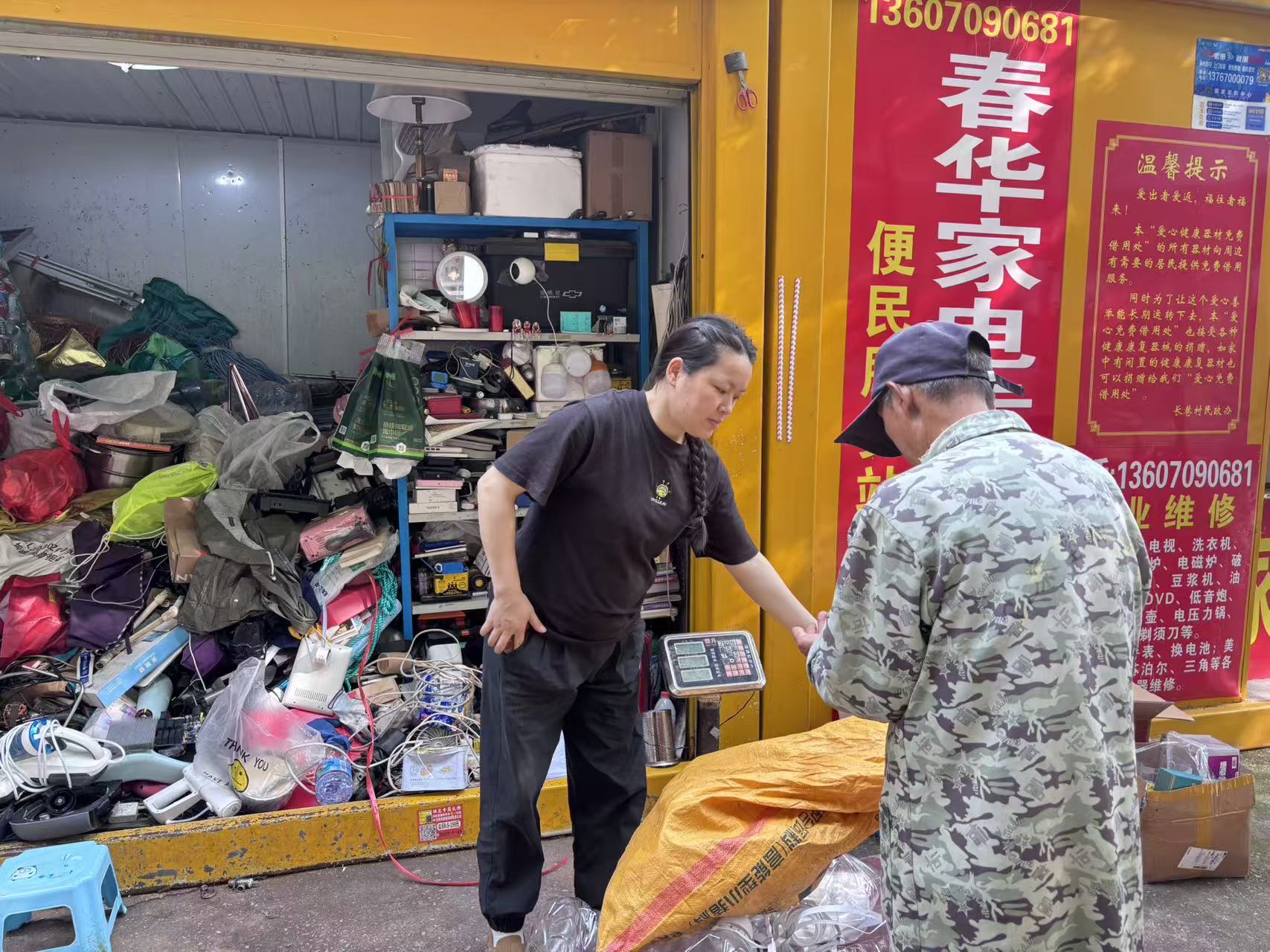 大江新闻讯陶春霞报道:清晨,天光未亮,南昌东湖区贤士湖管理处长巷村紫云小区附近,几个铁皮棚子已亮起灯,热闹起来。 剪个裤脚五块钱,修个电器二三十,电动车补胎不过几元……裁缝魏正莲用着新添的电动缝纫机,肖师傅“啪嗒”一声拧亮灯泡,章先生拉开卷闸门——门里藏着一屋子的“宝贝”。这条不过几十米长的“便民服务带”,就此开启了一天的叮叮当当。 四个铁皮棚子,四个行当,串联起周边老旧小区上万居民的日常所需。而它的诞生,源于一句朴素的话:“因为自己淋过雨,所以也想为别人撑把伞。” “因为自己淋过雨,所以也想为别人撑把伞” 章先生不善言辞,但这句话他说了三遍。每每说到这里,他便皱起眉头,眼睛里氤氲着水光。 章先生是四个摊位中第一个“铁皮屋”的主人,主营收废品。他告诉记者,自己原来干的是司机,东奔西跑不着家,也亲眼见过“魏阿姨们打游击”的艰辛,明白赚钱的不容易。后来,他听说村里想给流动摊贩找个固定地方,便主动提出:“铁皮棚子由我来提供,免费给大家使用。”他自掏腰包,买来活动板房,又请吊车运到现场。一个、两个……陆续搭起四个棚子,花了近两万元,他自己只用一间,其余免费让给其他手艺人。 “我现在做这个挺好的,有些塑料在土里几十年都不分解,做资源回收、又环保。”章先生蹲下身,把一捆纸壳码整齐,“纸壳子收三毛一斤,卖四毛一斤,赚一毛差价,书本之类的纸要贵一点。”在他看来,收废品不只是谋生,也是替街坊邻居“扫干净家门口”,让能用的东西循环起来,少些垃圾,多些干净。 章先生的妻子告诉记者:“他就是这样一个性情的人。他在证券街也免费投放了2个棚子,给那些手艺人免费用。”说这话时,她脸上带着笑,语气里是藏不住的自豪。