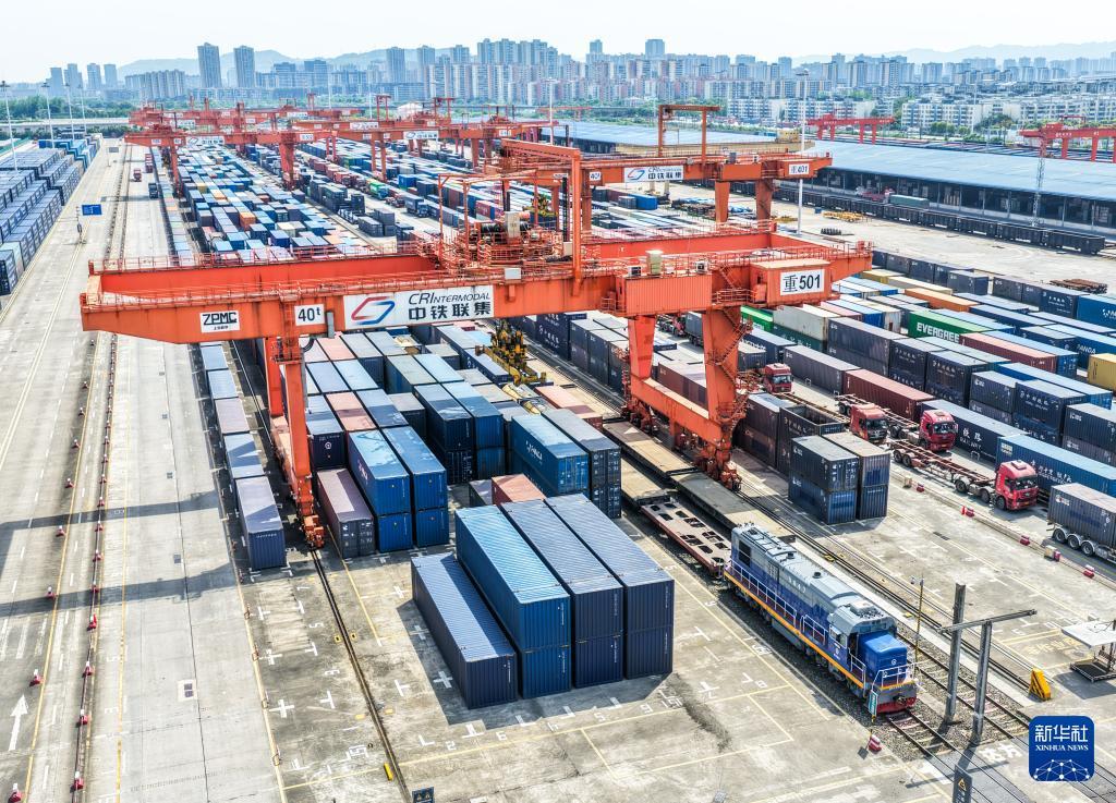 4月23日,一列装载汽车配件、机械机具等货物的中欧班列在重庆团结村站等待发车(无人机照片)。 4月23日,一列装载汽车配件、机械机具等货物的中欧班列从重庆团结村站缓缓驶出。据国铁成都局重庆铁路物流中心统计,今年一季度,重庆中欧班列共发送班列超200列,装车14000余车,较去年同期分别增长27%、25%。 截至目前,重庆中欧班列已稳定运行成熟线路53条,辐射39个亚欧国家的118个枢纽节点城市。货源品类从开行初期以笔记本电脑为主,逐步扩展至汽车整车、机械零件、日用百货、电子产品等上万种商品,成为“重庆造”走向世界的重要通道。 新华社记者 唐奕 摄 |