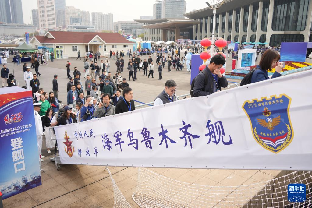 4月23日,台湾同胞在山东青岛参加海军成立77周年纪念日舰艇开放活动,登上面向公众开放的海军乌鲁木齐舰、潍坊舰,并到海军博物馆参观。