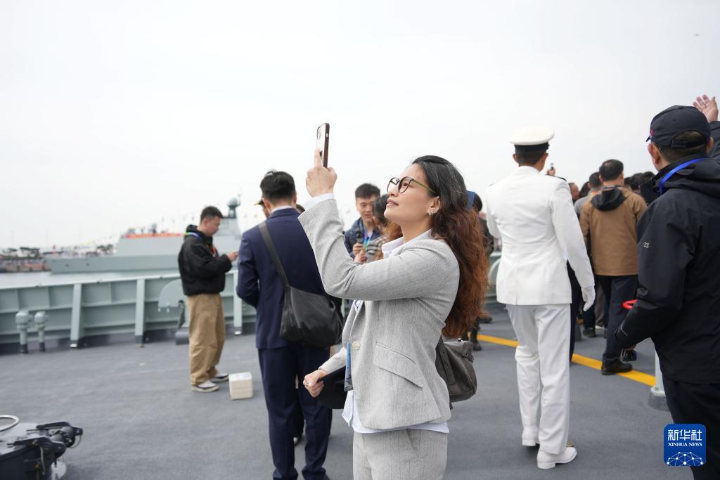 4月23日,台湾同胞在山东青岛参加海军成立77周年纪念日舰艇开放活动,登上面向公众开放的海军乌鲁木齐舰、潍坊舰,并到海军博物馆参观。