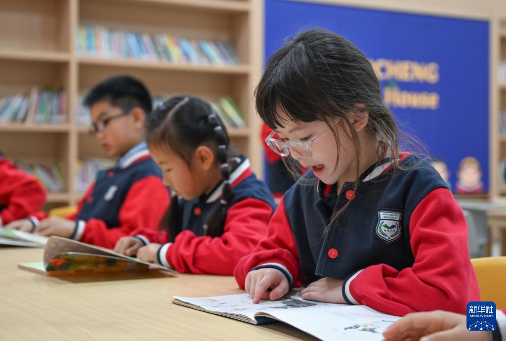 4月23日,重庆南城巴川学校的学生们利用课间休息时间开展阅读活动。