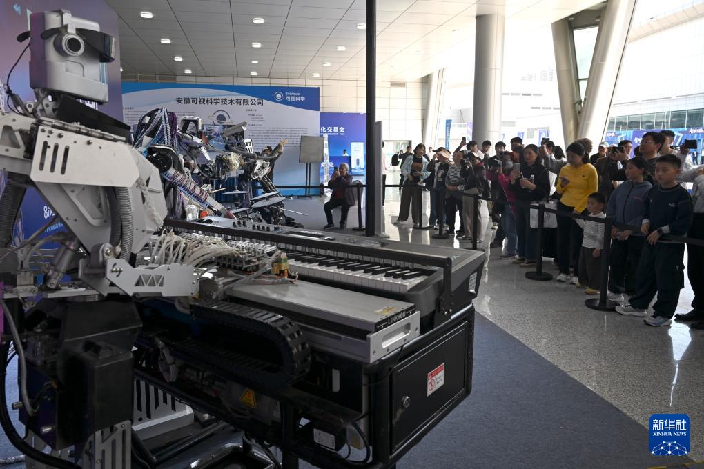 4月26日,观众在第四届中国(安徽)科技创新成果转化交易会上观看机器人乐队演出。 4月26日至28日,第四届中国(安徽)科技创新成果转化交易会在合肥举行。本届科交会以“科技打头阵 创新赢未来”为主题,展示我国多个领域科技创新的最新成果。 新华社记者 黄博涵 摄