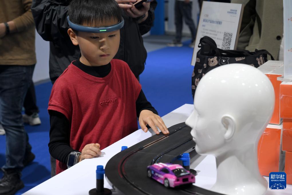 4月26日,小朋友在第四届中国(安徽)科技创新成果转化交易会上体验一款脑控赛车。 4月26日至28日,第四届中国(安徽)科技创新成果转化交易会在合肥举行。本届科交会以“科技打头阵 创新赢未来”为主题,展示我国多个领域科技创新的最新成果。 新华社记者 黄博涵 摄