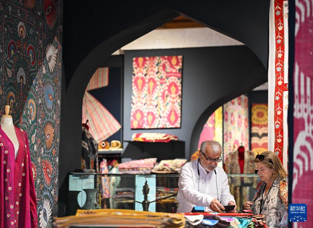 4月24日,人们在乌兹别克斯坦布哈拉古城内的商店购物。