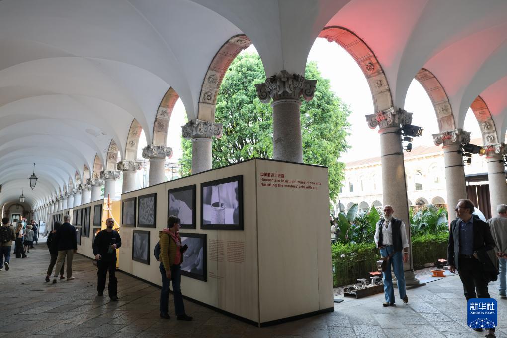4月20日,在意大利米兰大学,人们在米兰设计周“中国非遗工匠展”参观。