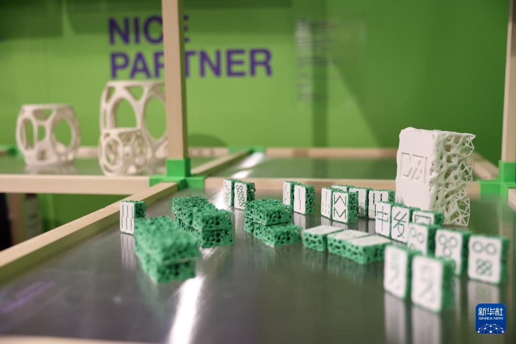 这是4月22日在意大利米兰国际会展中心米兰家具展同济大学展位拍摄的3D打印设计产品。