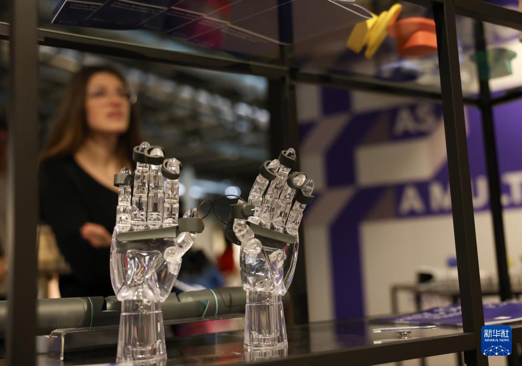4月22日,在意大利米兰国际会展中心,一名女子在米兰家具展中国美术学院展位参观。