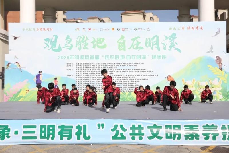 4月26日,2026年明溪县首届“观鸟胜地 自在明溪”健康跑在县经济开发区鸣枪开赛。近1000名全省跑友、本县干部职工与健身爱好者同场竞技,以活力奔跑展现明溪风貌,以运动热潮喜迎省运盛会,实现体育赛事与生态文旅、消费提振深度融合。
