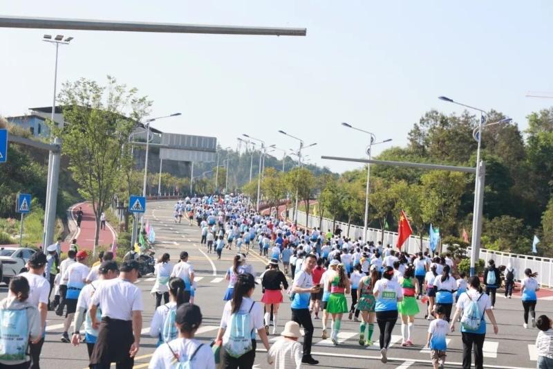 赛事设8公里体验组、15公里全程组,起终点均设于澳莱贝尔幼儿园,赛道串联药谷大道、横六线、思贤大道等城市核心路段,沿途风景优美、保障齐全。开幕式上,文艺表演、领导致辞、合唱国歌等环节有序开展。发令枪响后,参赛选手奋勇向前,尽显昂扬向上的精神面貌。